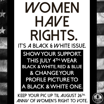 And turn your profile picture or banner on all of your social media sites black and white through August 26; this is the anniversary of women’s right to vote being placed into the US Constitution.
